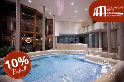Verbringe den Winter in mediterraner Atmosphäre und tauche ein in unser Thermalbad mit 1500 m² Wasserfläche, umgeben von Palmen und exotischen Pflanzen! Genieße das heilende Thermalwasser bei Bewegungs-, neurologischen und Rückenproblemen, während dich unter der riesigen Glaskuppel das ganze Jahr über mediterraner Sommer erwartet. Unser Winterangebot umfasst Halbpension, unbegrenztes Softdrink-Paket, attraktive Kinderermäßigungen und Senior 55+ Pakete. Kinder unter 6 Jahren übernachten kostenlos. Die ganze Familie ist willkommen: Kinder werden im Spielzimmer, Gamer Room, beim Tischfußball, Tischtennis, Billard und Gesellschaftsspielen bestens unterhalten, während du in Ruhe entspannen und neue Energie tanken kannst. Buche jetzt und genieße das mediterrane Wellnesserlebnis in der winterlichen Kälte!