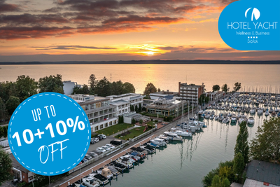 Our newest addition, a modern four-star wellness hotel, is perfect for those seeking relaxation thanks to its prime location, excellent cuisine, and attentive staff. Situated next to Siófok Marina, the view of Lake Balaton is a daily delight. Its spacious, panoramic wellness area offers complete mind and body rejuvenation. Guests can enjoy a swimming pool, jacuzzi, Finnish and infrared saunas, steam room and quiet relaxation zones, complemented by professional massages and pampering treatments.