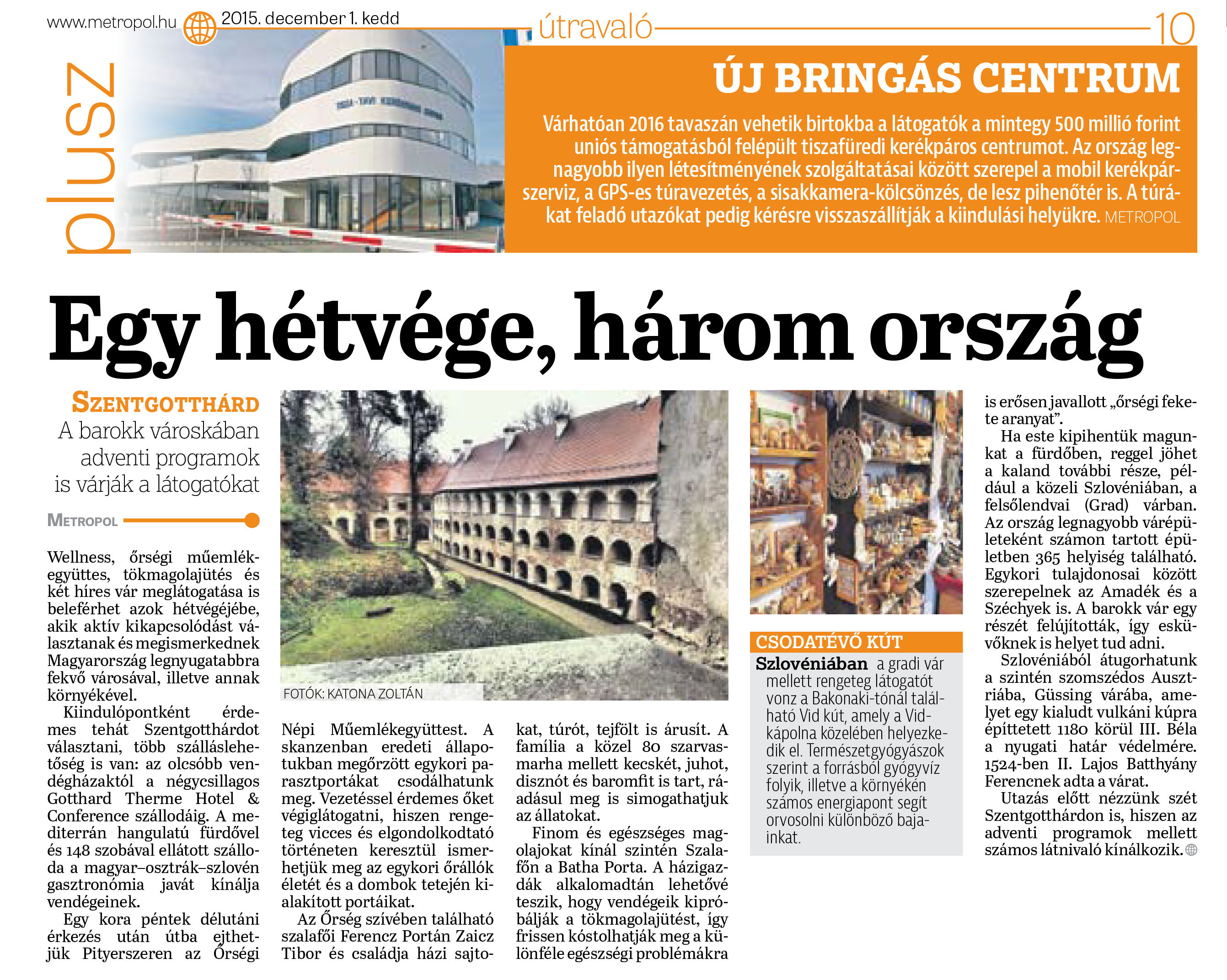 2015. november végén újságírókat láttunk vendégül az Accent Hotels legújabb négycsillagos szállodájában, a Gotthard Therme Hotel & Conference szállodában Szentgotthárdon. A résztvevők bepillantást nyerhettek a vidéki élet szépségeibe: megismerkedhettek a pálinkakészítés és a tökmagolaj sajtolás tradíciójával és ellátogattak a közeli Ausztriába és Szlovéniába is, ahol festői szépségű várakat tekintettek meg.