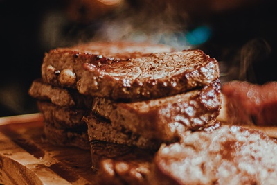 A tisztított szűzpecsenyét 2 órára 6% sóoldatba rakjuk, majd leszárítjuk és hirtelen kérget sütünk rá. Majd olíva olajjal és fűszerekkel vákumozzuk majd 64 fokon 40percre sousvide kádba helyezzük.