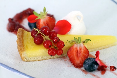 Amíg sül, elkészítjük a tölteléket: kikeverjük a cukrot a tojásokkal, majd amikor már kicsit kifehéredett hozzáöntjük a tejszínt, a citromok levét és héját. Jól eldolgozzuk. Az elősütött pitét kicsit hagyjuk hűlni, visszavesszük a sütő hőfokát 140°C-ra. Beleöntjük a tölteléket a formába és visszatesszük a pitét a sütőbe.